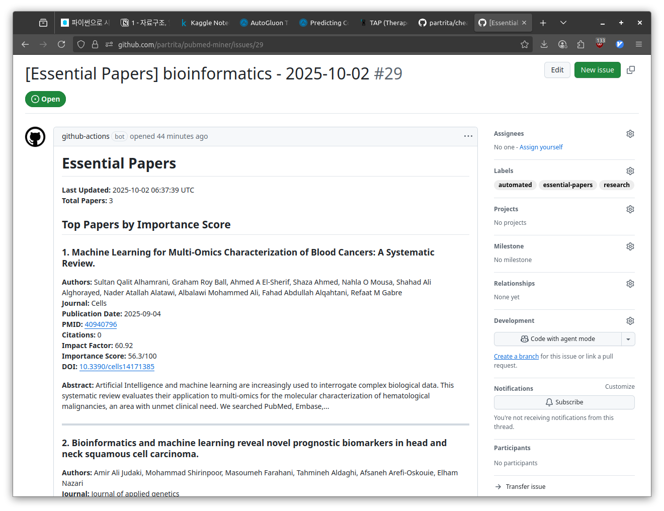 pubmed-miner는 PubMed에 등재된 논문들을 분석하기 위해 개발한 파이썬 기반의 사이드 프로젝트입니다. 곧바로 활용될 수 있습니다.