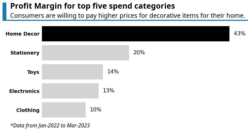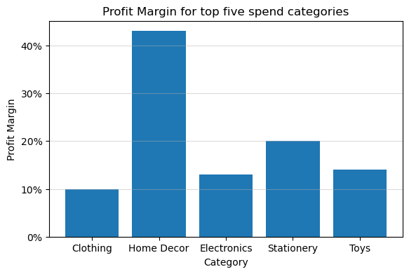 'Profit Margin for top five spend categories',